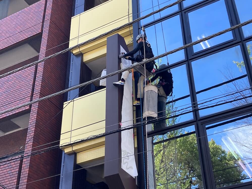 サインとは、建物内外の看板やロゴマークの表示、人々の動線を示すための案内図などを言い、グラフィックな広告ディスプレイまで展開しています。